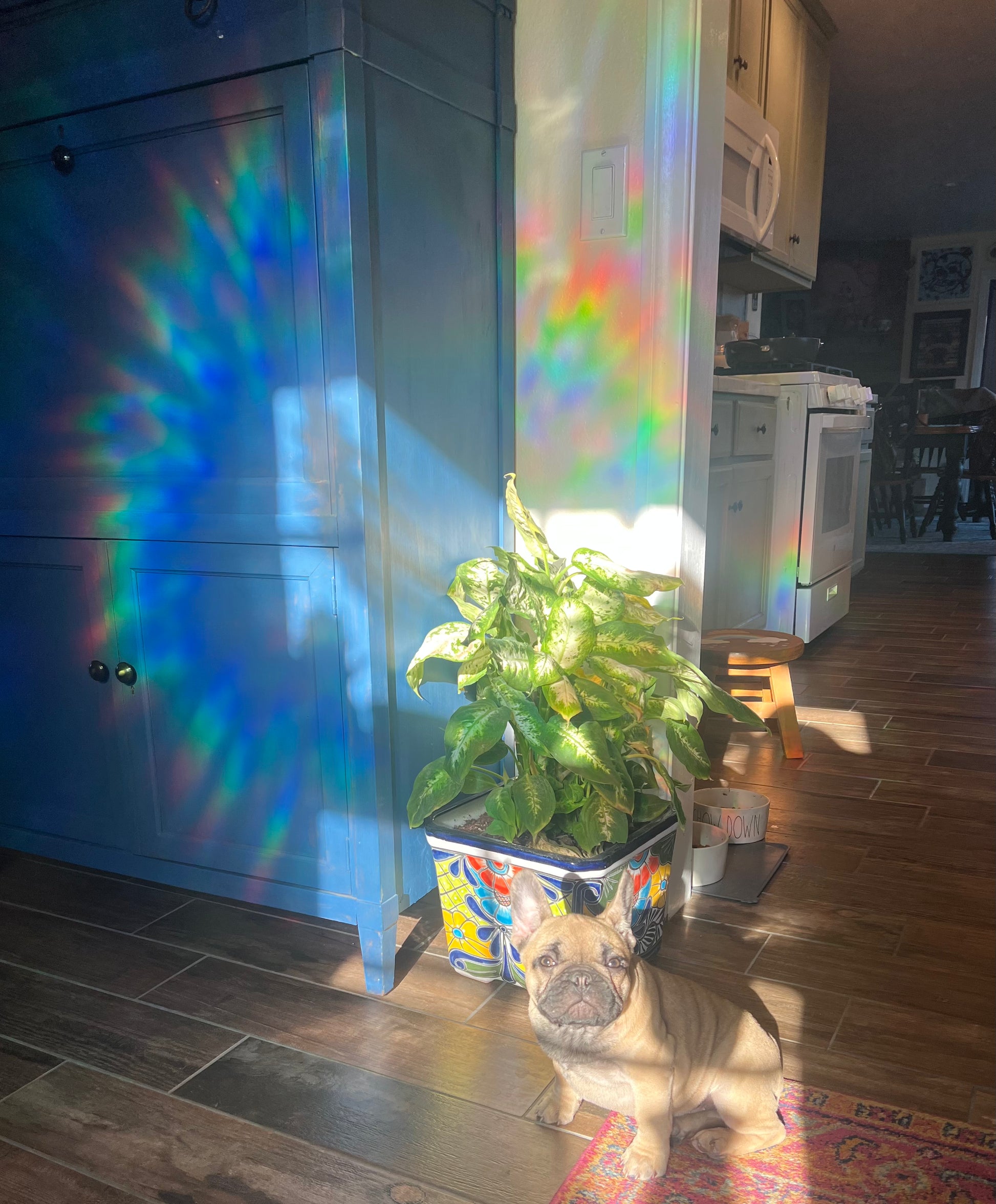 6.5 inch window cling sun catcher. When placed in direct sunlight, the holographic cling will project rainbows into your home.